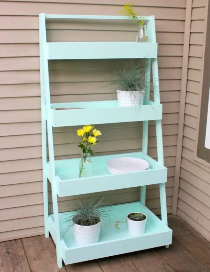 Do not throw away your old tower towel! Create an extraordinary plant stand instead. Repaint it in baby blue and highlight your plants on its shelves.