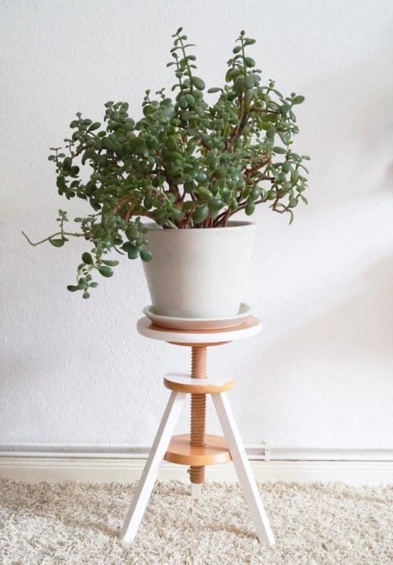 Are you into something modern? Create this plant stand at home. All you need are a pale pink container, screws, and golden legs.