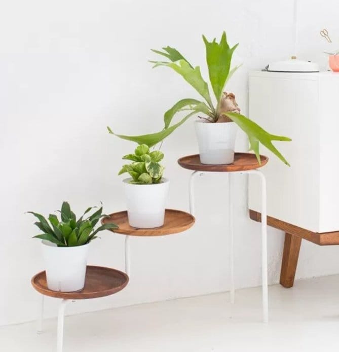 The two-tiered plant stand replaces the side table. It is strong enough to accommodate medium and large-sized houseplants.