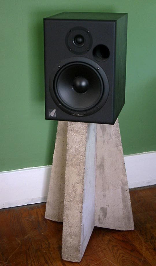 This concrete speaker stand looks rustic but fantastic. To shape it, you must prepare a wooden mold. Put a black speaker on top of the light gray stand for a lovely contrast.