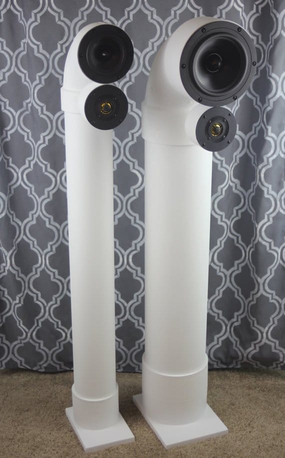 Do you want to keep your room clutter-free? Build the DIY stands out of white PVC pipes in different sizes. After that, integrate your speakers into the speakers. Now, you have periscope-like speaker holders.