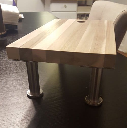 You need this stand to accompany your desktop speaker. The unvarnished wood is placed atop four short metal pipes. What a charming speaker stand!