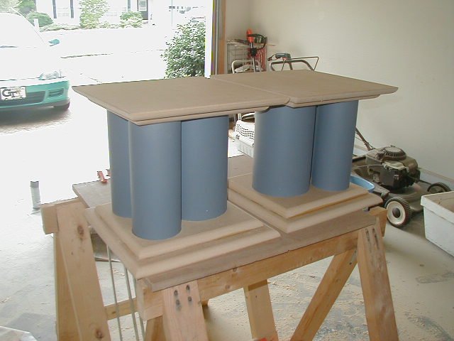To build these surround sound speaker stands, you need unfinished wooden boards, nails, straightened woods, woodworking tools, and glue. The boards will be the bottom parts and tops of the speaker stands.