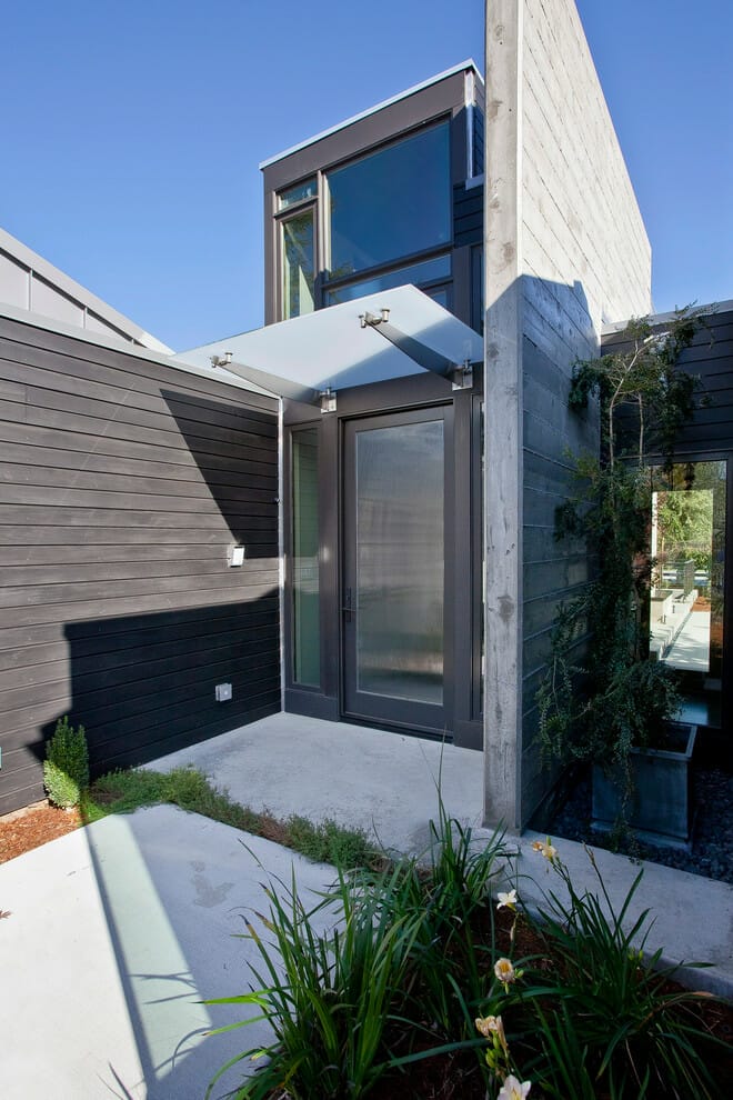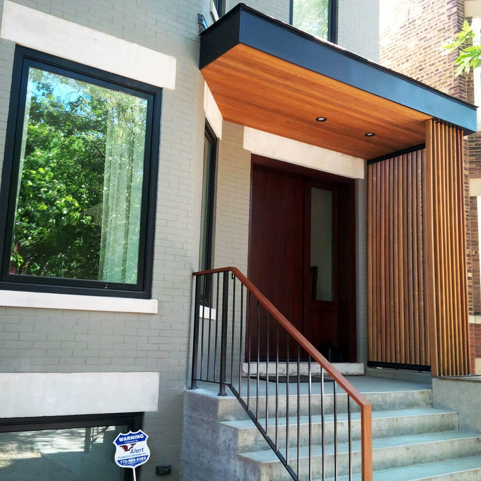 The semi-industrial concept combines a modern and industrial design. It looks clean but has its uniqueness. One of the best front door awning ideas for this concept is the concrete door awning. You have to build it permanently, but it will be more durable.