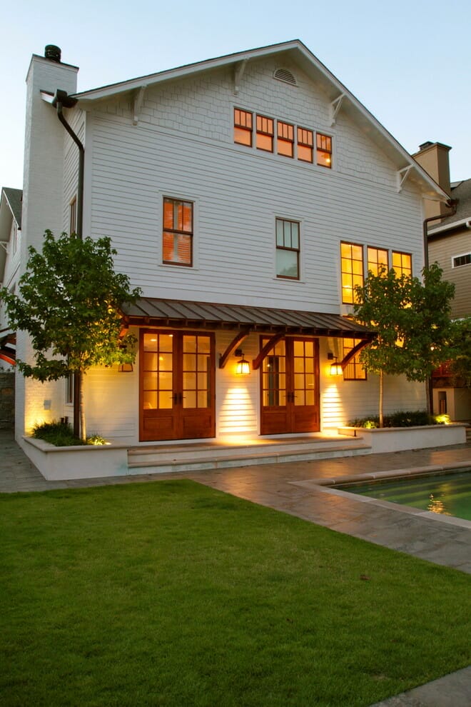 If you want a simple front house look and not overshadow the other exterior, you can go with this concept. Build the awning that has precise size with your door’s size. For the roof of the awning, you can use the same tile as your roof.