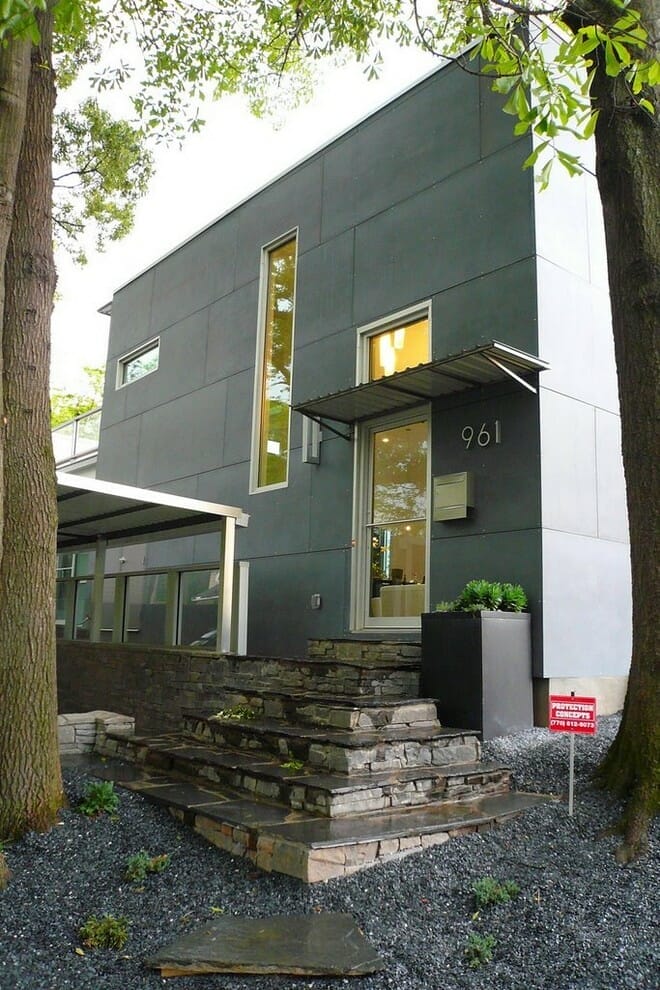 For the minimalist house, you can install the elongated awning so that there is space on the right and left doors.
