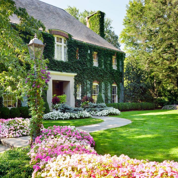 Apart from providing lawns and shrubs to accompany your flower bed, you can also go with vines planted near the house. Next, let them grow naturally to cover the wall.