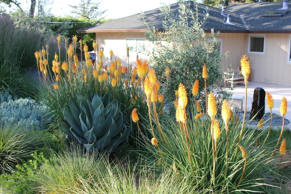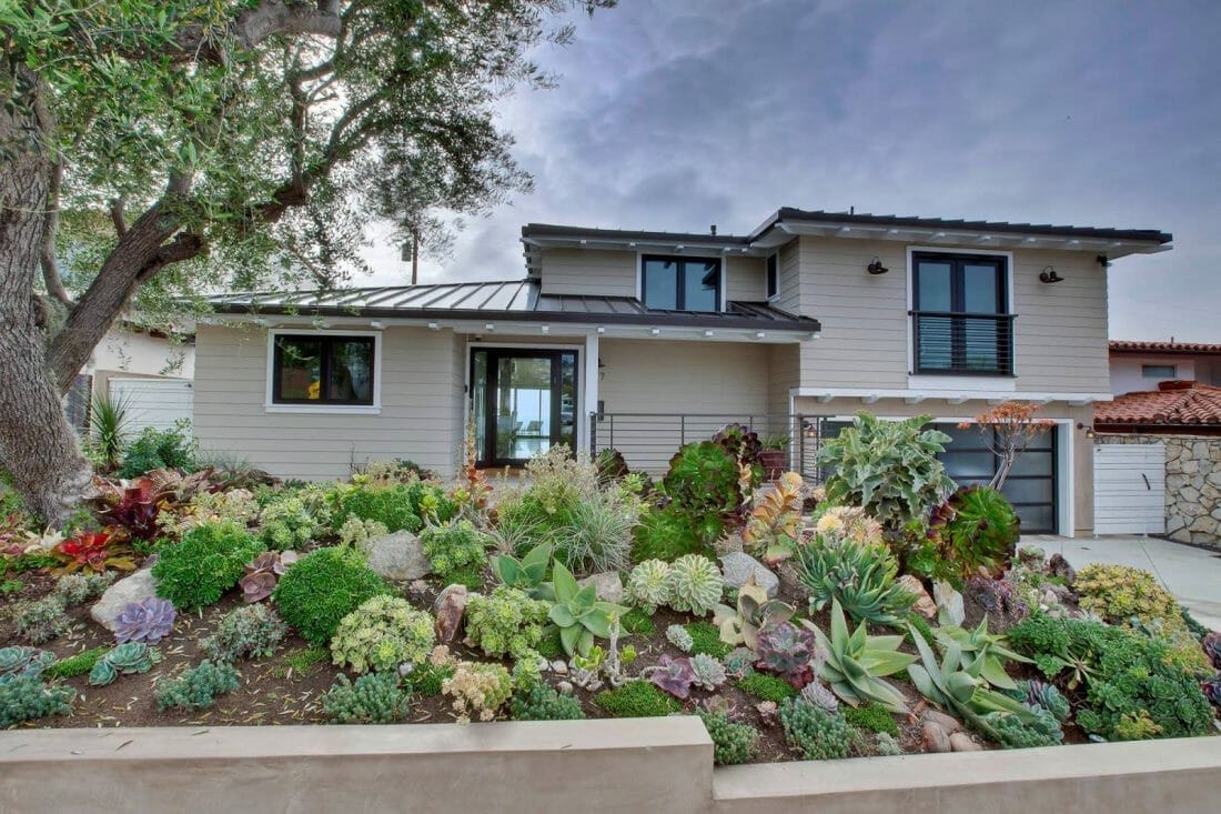Tall succulents like aloe and euphorbia are the perfect choice for you who want to cover the front side of your home.