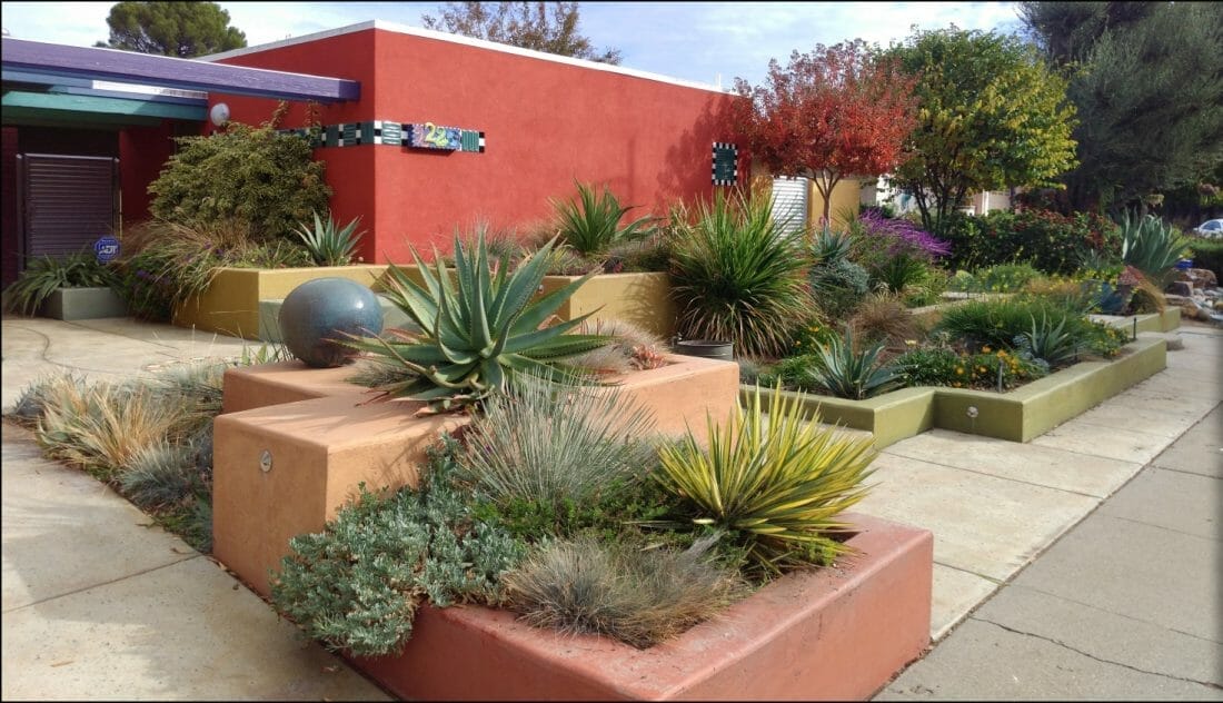 For the modern succulent front yard, the tropical concept is a hit nowadays. It does not only take the succulent, but you also take any plants.