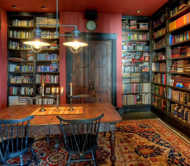 In the olden days, libraries were often found within dining rooms. Antique furniture isn’t ideal for shelving books. Why not incorporate shelving into your walls to create the perfect library?