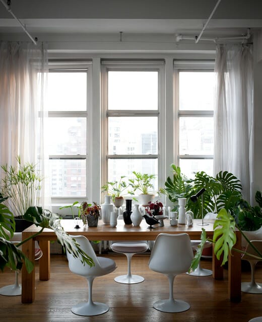 Providing you with an elevated level of decor, indoor plants are taking over design photos. With this in mind, allow them to overtake your unused dining area too. Using vases, pots and cuttings you are nurturing makes an enticing new orangerie.