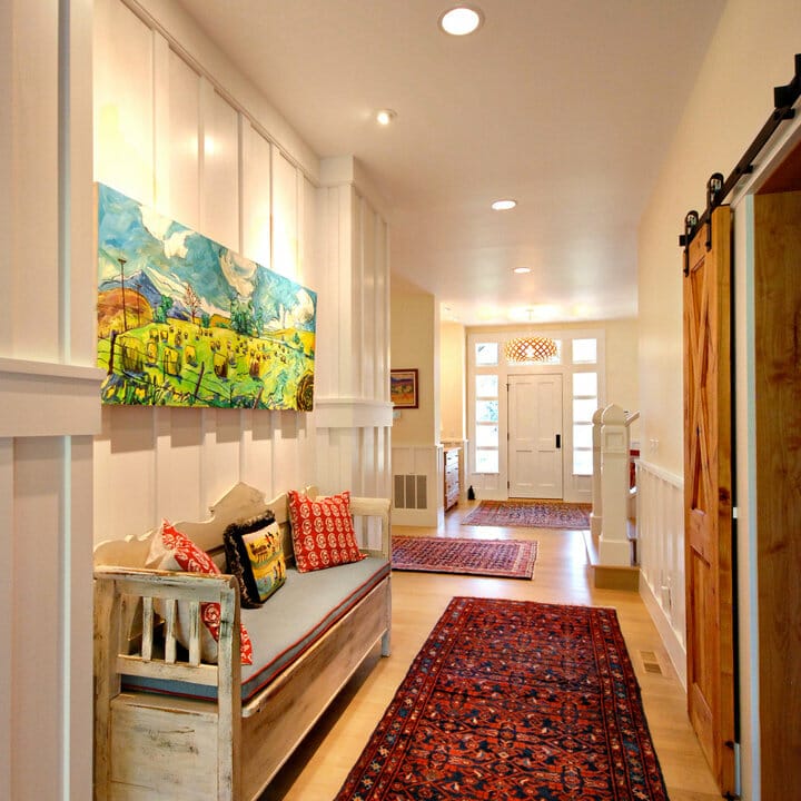 Most homeowners typically associate a hallway with a dreary and unexciting space. As you see, this passageway says the opposite.