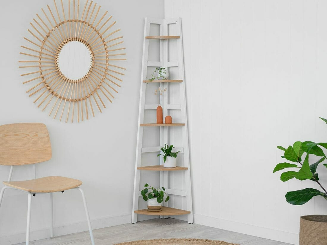 This 5-tier freestanding corner shelf is surely a fabulous DIY solution since you can assemble it with ease.