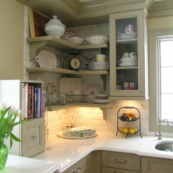 22. Corner Shelf Ideas for Farmhouse Kitchens