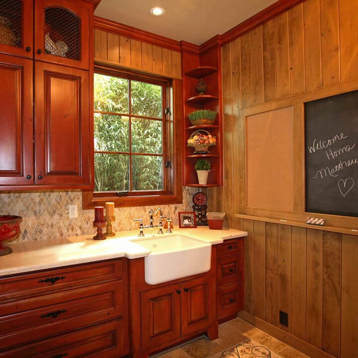 These corner shelves heighten the kitchen’s country flavor. In addition, they ooze an air of old-world elegance. The pieces complement existing cabinets, too.