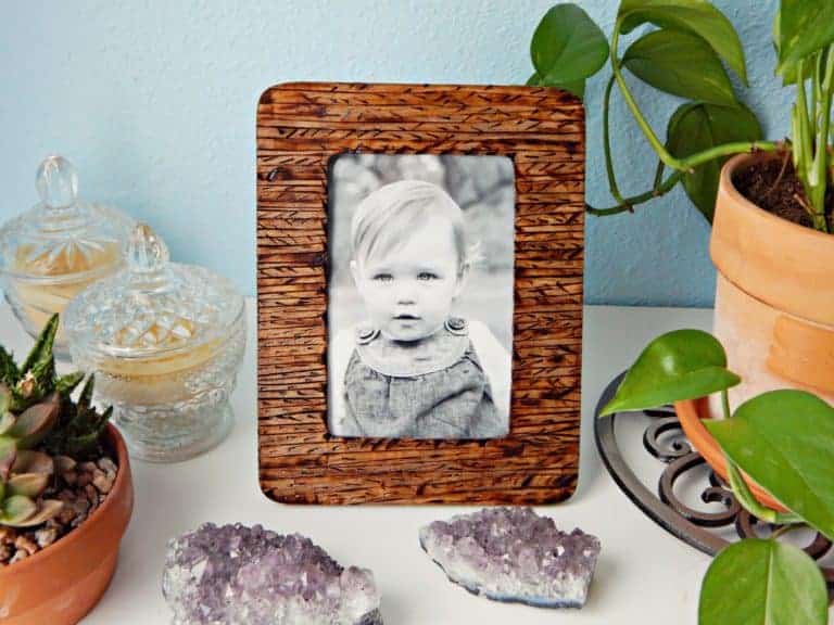 Since the patterns of wood-burning are close, they lend the picture frame some definition. Go the extra mile by engraving a short quote or a name into the unit.