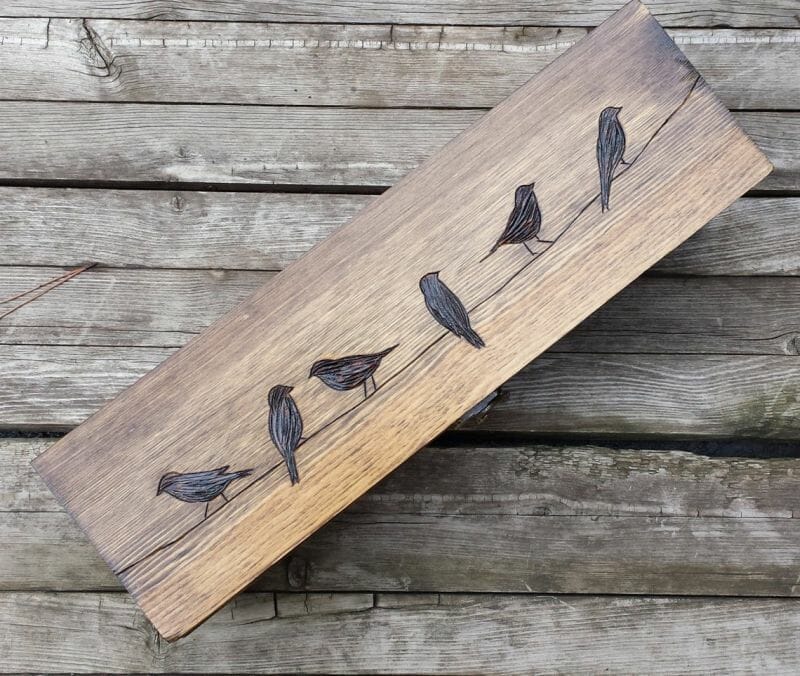 Wood-burned birds take a bland rectangular wooden object to the next level. For sure, it’s a remarkable gift for a birdwatcher or simply a nature lover.
