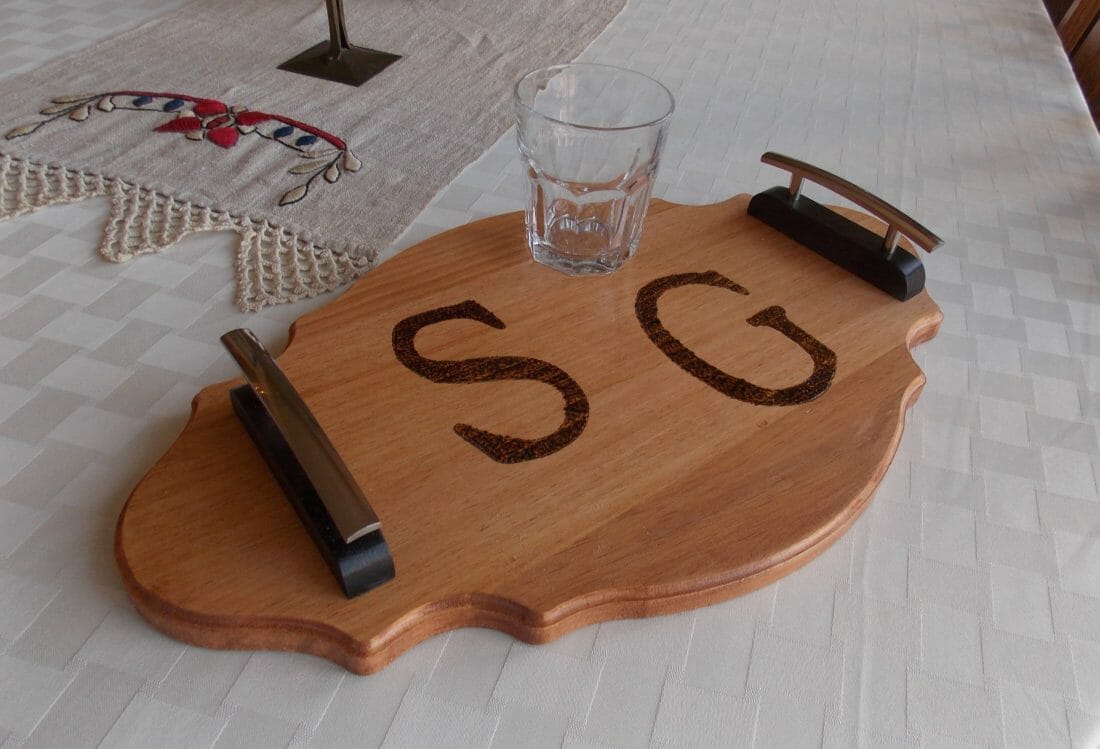Undeniably, this wooden serving tray makes a unique housewarming or wedding gift. Due to its practicality and beauty, I guarantee the recipient will adore it. Furthermore, wood burned initials give the handiwork a sentimental value.