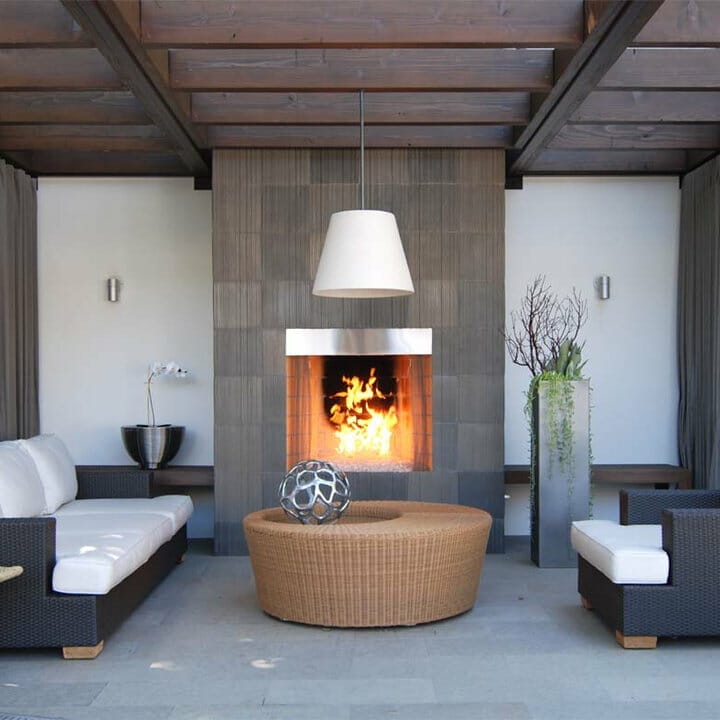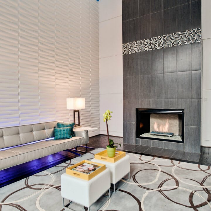 If your living area features high ceilings, apply this brilliant idea. Here, the ceiling-to-floor installation of fireplace tiles elongates the room’s structure. In addition, it makes the interior seem more trendy.
