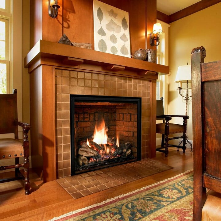 The fireplace’s interior looks excellent because of subway tiles. Lastly, black grout lines effortlessly provide a bit of drama.