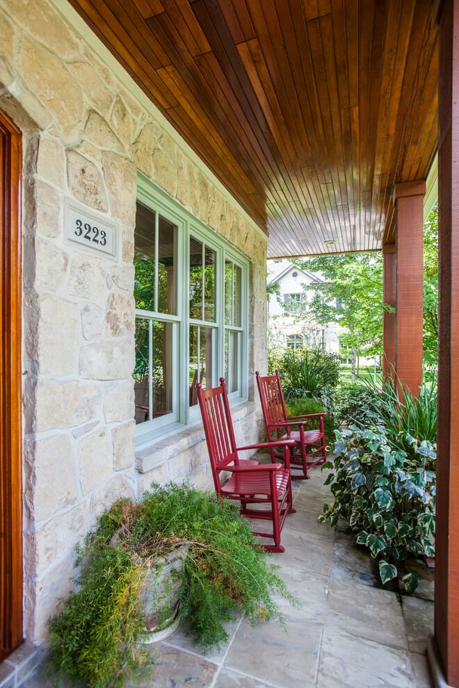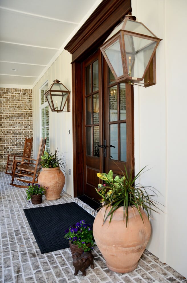 Let’s begin with this fully furnished front porch that looks simple but charming at the same time. The potted plants double as a centerpiece and a part that lends a lively color to the space.