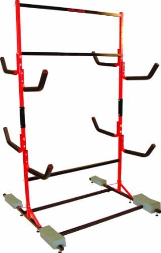Do you own a small kayak collection? If yes, you should purchase this kayak storage rack. Even though it is compact, it can accommodate two hard-shell kayaks at an angle. It has a weight capacity of 175 pounds.