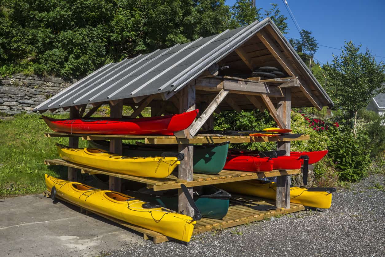 As the image shows, the kayak shed is such a cool storage solution. It can house multiple kayaks, not to mention it keeps yours out of bad elements. Therefore, it stays in peak condition throughout the year.