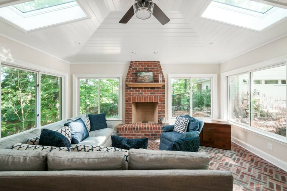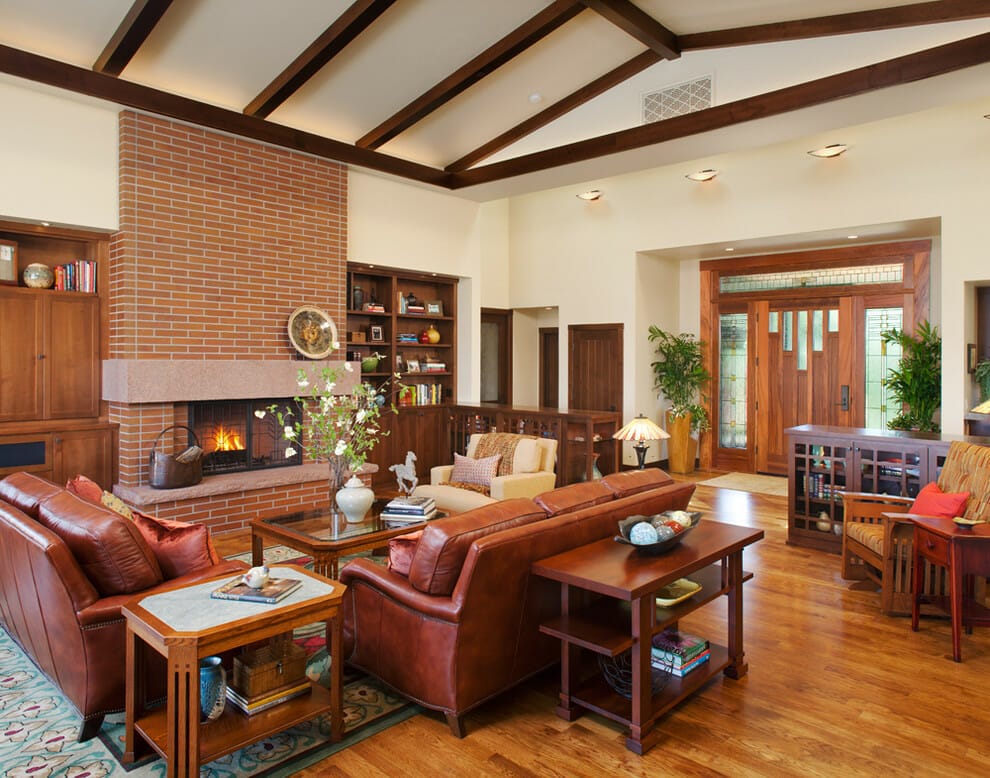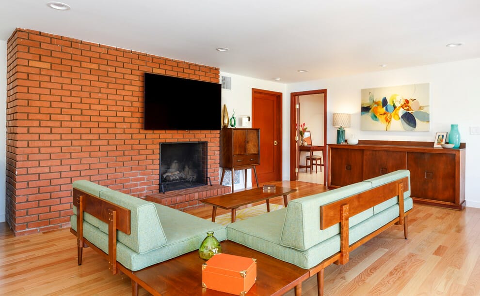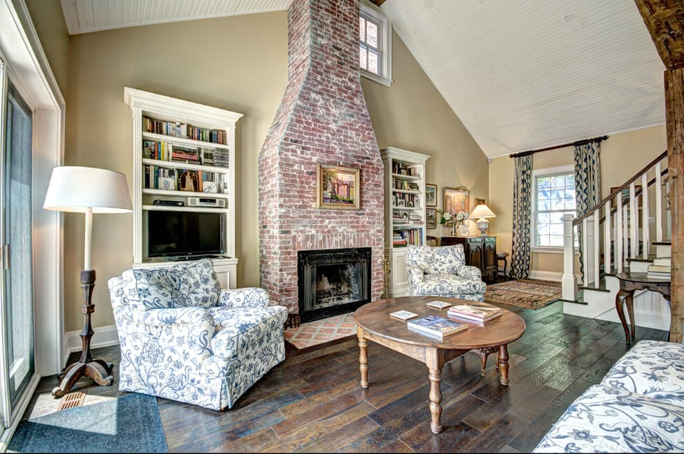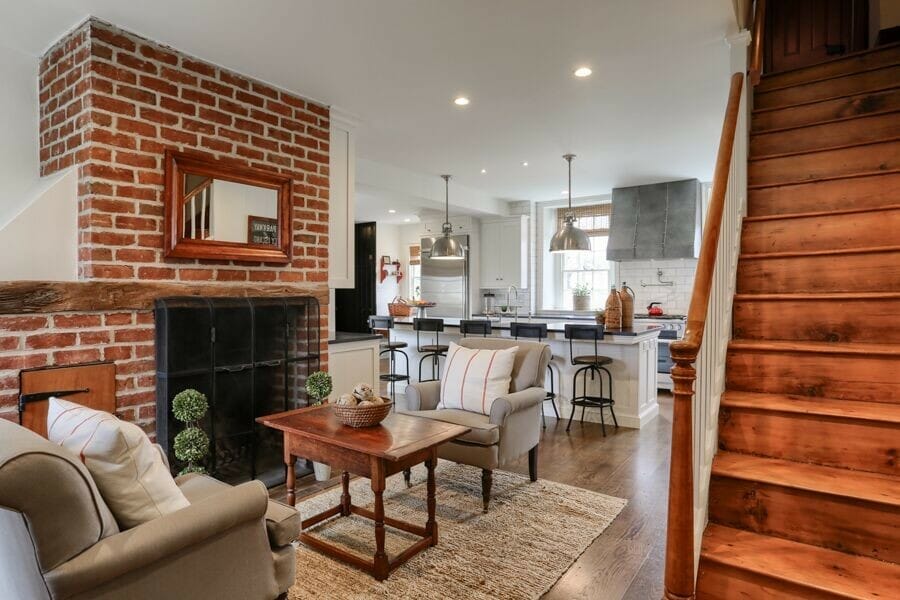 2. Red Brick Fireplace Living Room