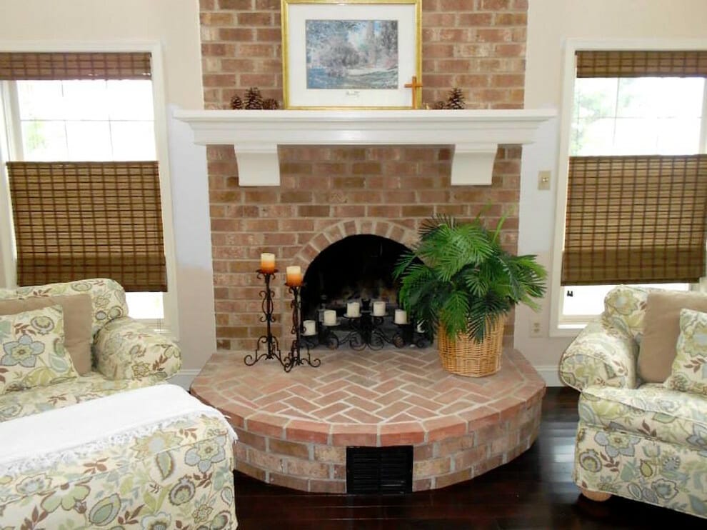 18. Brick Fireplace with White Surrounds
