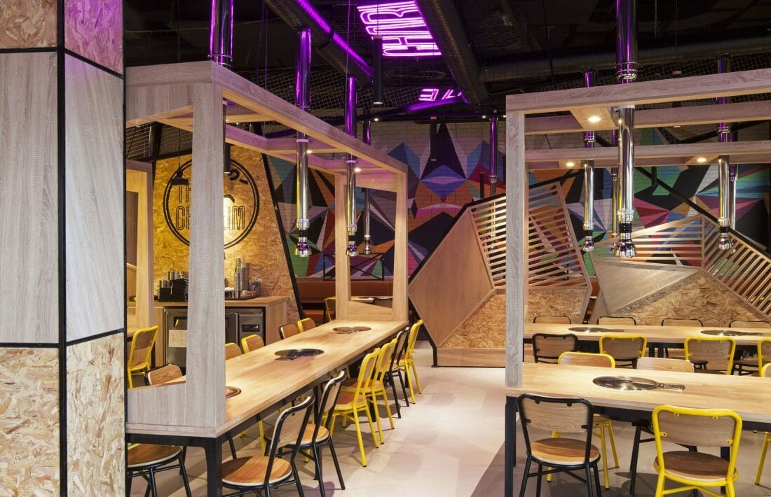 This restaurant implements the minimalist style by keeping down on accessories. Still, it looks elegant and denotes Asian vibes.