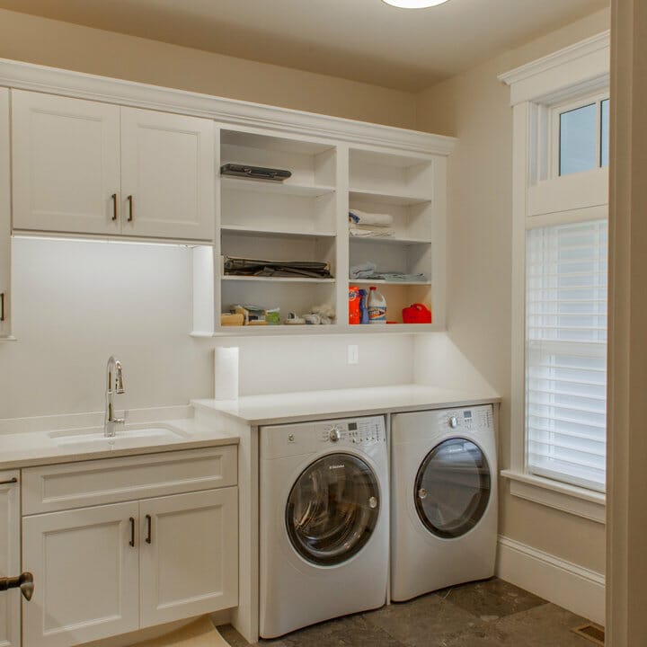 There are times when you need more than just a shelving system in your laundry room. That’s why you have to consider installing built-in furniture complete with the cabinet as well.