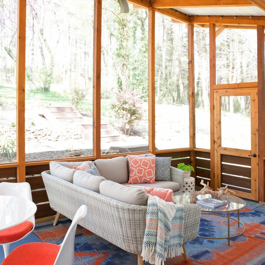 This Atlanta porch gets inspired by simple screened in porch ideas that date back to the 1960s. Thus, it is natural to label it mid-century also.