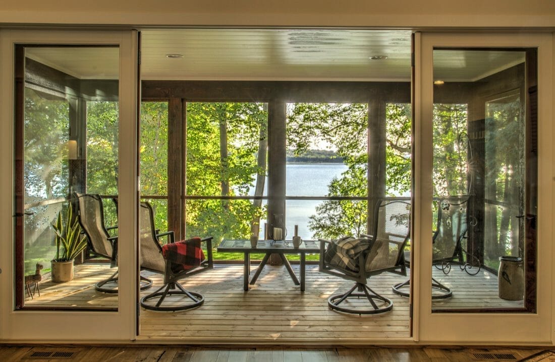 If you have a lakefront view like this, a screened-in veranda is a sure thing. It features two sets of swivel patio dining armchairs to let you and your companies lean back and adore the outside beauty.