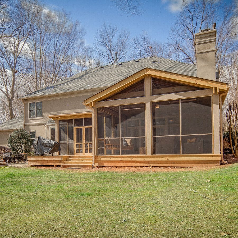 This picture portrays the side view of simple screened in porch ideas. Would you believe the fact that it is not a part of the main building originally?