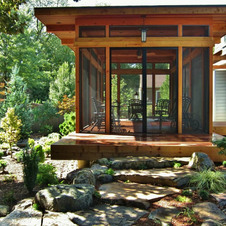 Zen design emphasizes forming stability, synchronization, and relaxation feeling via a minimalist style. That is why it fits simple screened in porch ideas like this back porch has proven to you.
