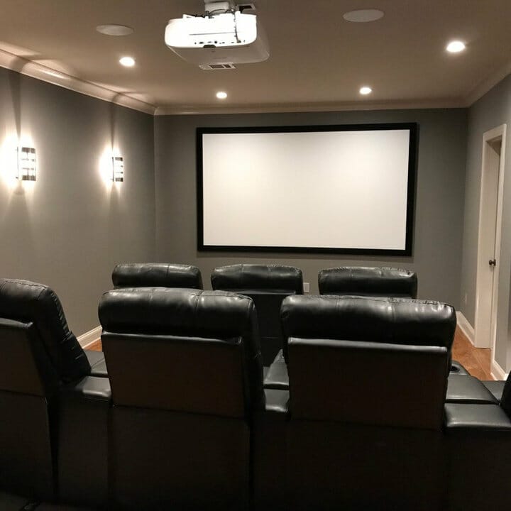 The best paint color for home theater walls will be those of dark tones, such as dark brown, gray, black, or burgundy.