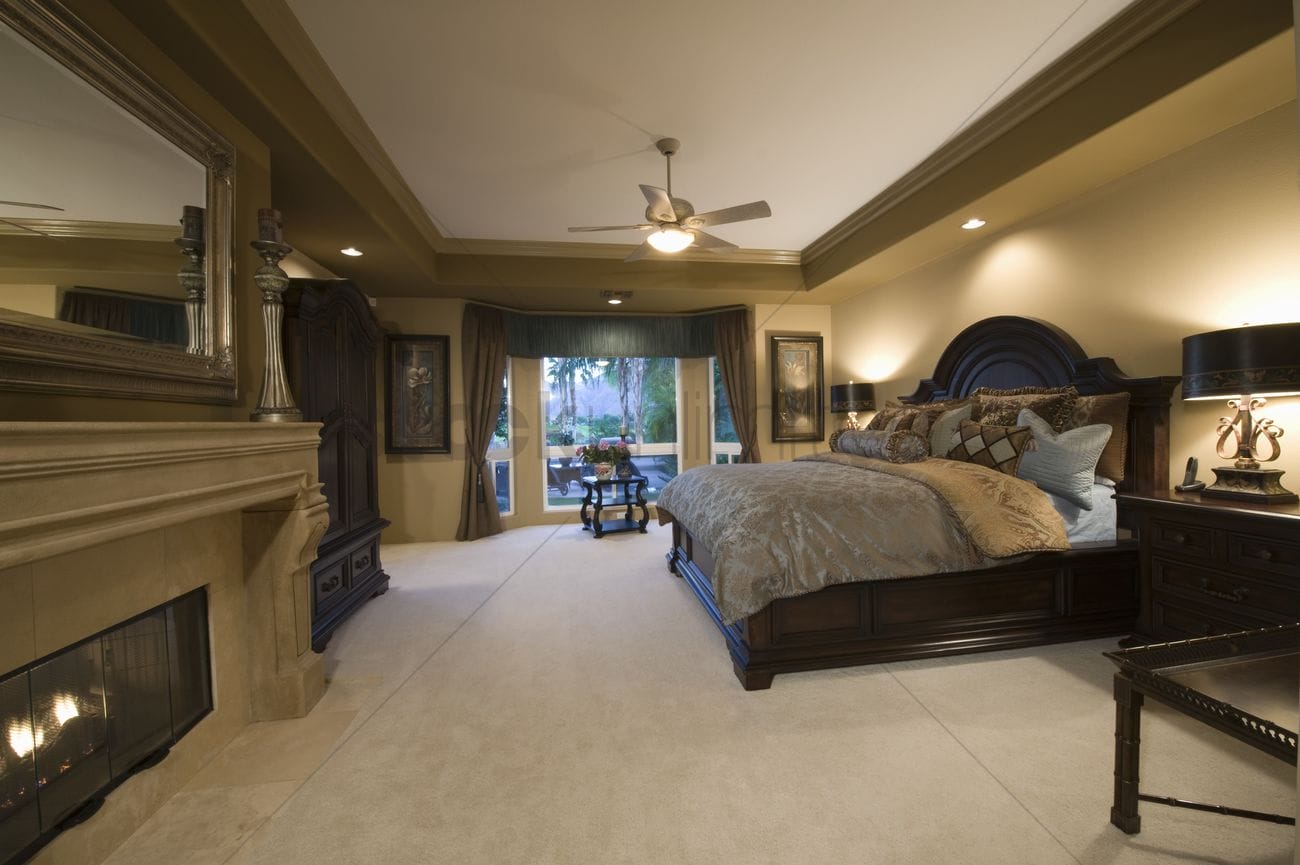 The muted colors promote a restful night’s sleep, while a large tray ceiling is extravagant on its own.