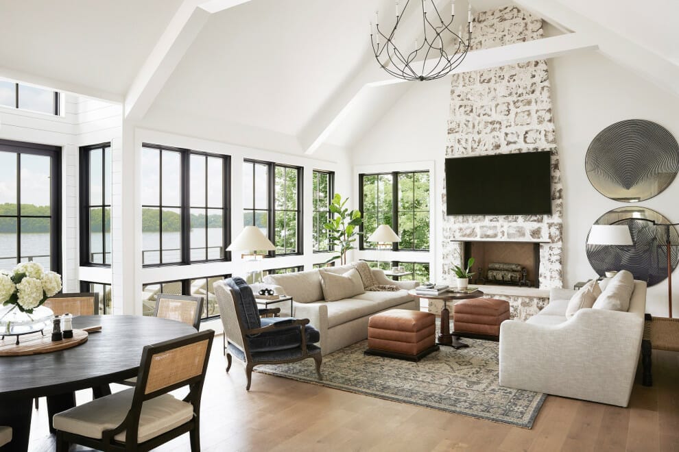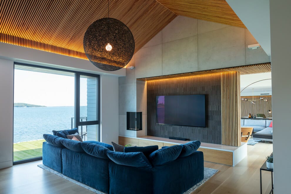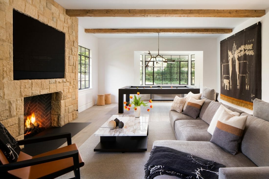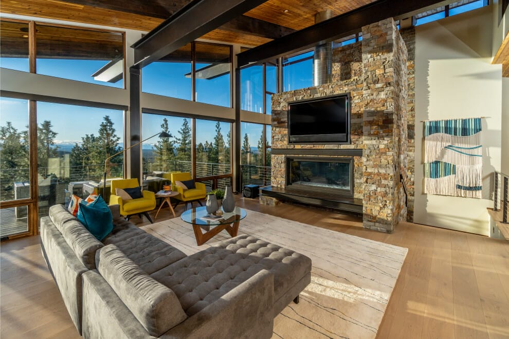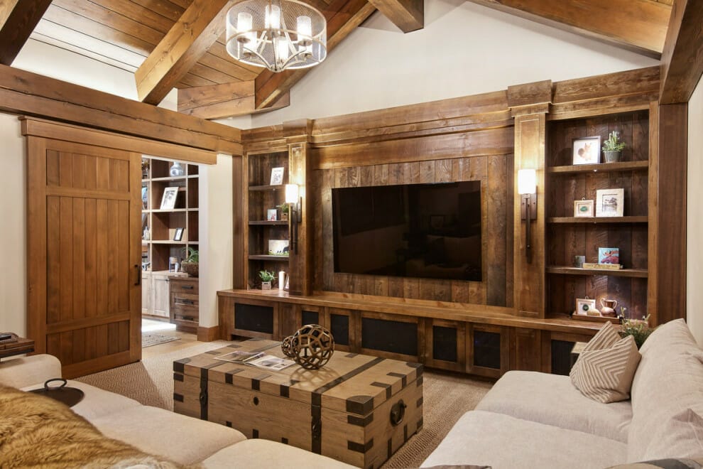 In a rustic-style house, it is effortless to dramatize the presence of your mounted TV.