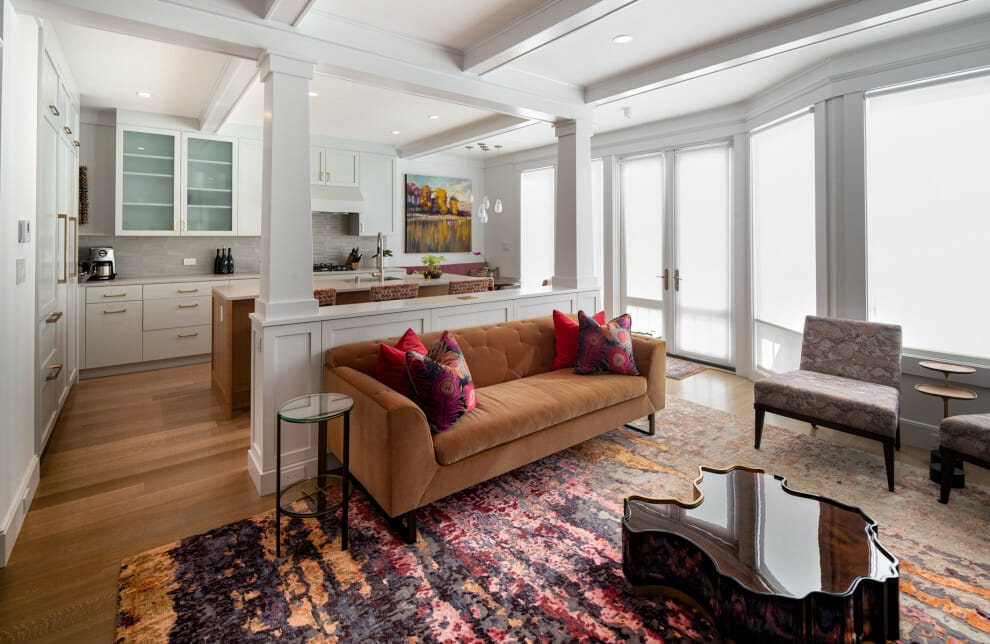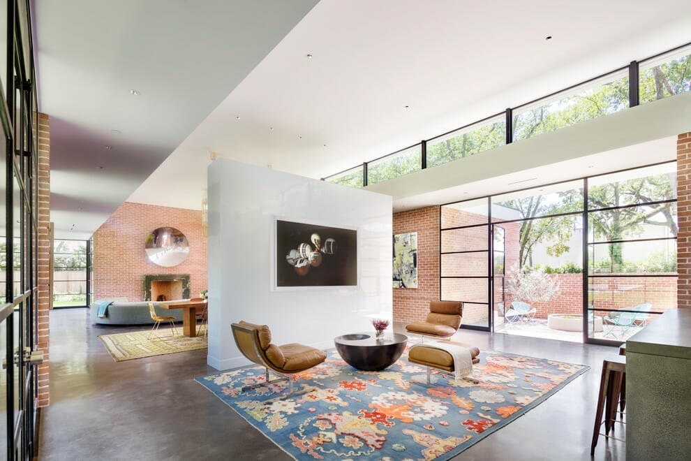 In open-layout homes, creating visual separation is crucial. By doing so, the interior feels more intimate, welcoming, and private, of course.