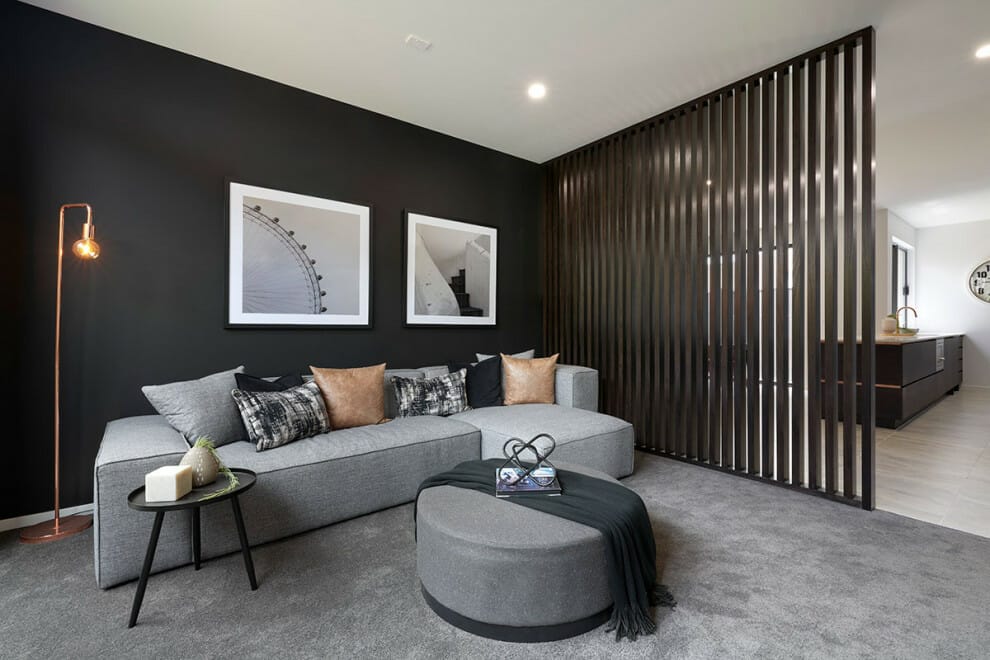 This is another separation wall that employs stylish wooden slats. Due to the black paint, they can infuse some drama and intimacy in seconds.