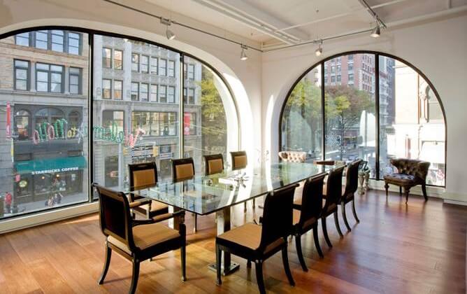 In this example, the windows come with a half-circle frame. They pose as a decor feature. Additionally, they allow you and your family to enjoy the city views while having dinner.