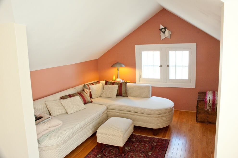 To optimize the attic room ceiling height, use bright white paint. Since it helps reflect light, it provides a sense of spaciousness.