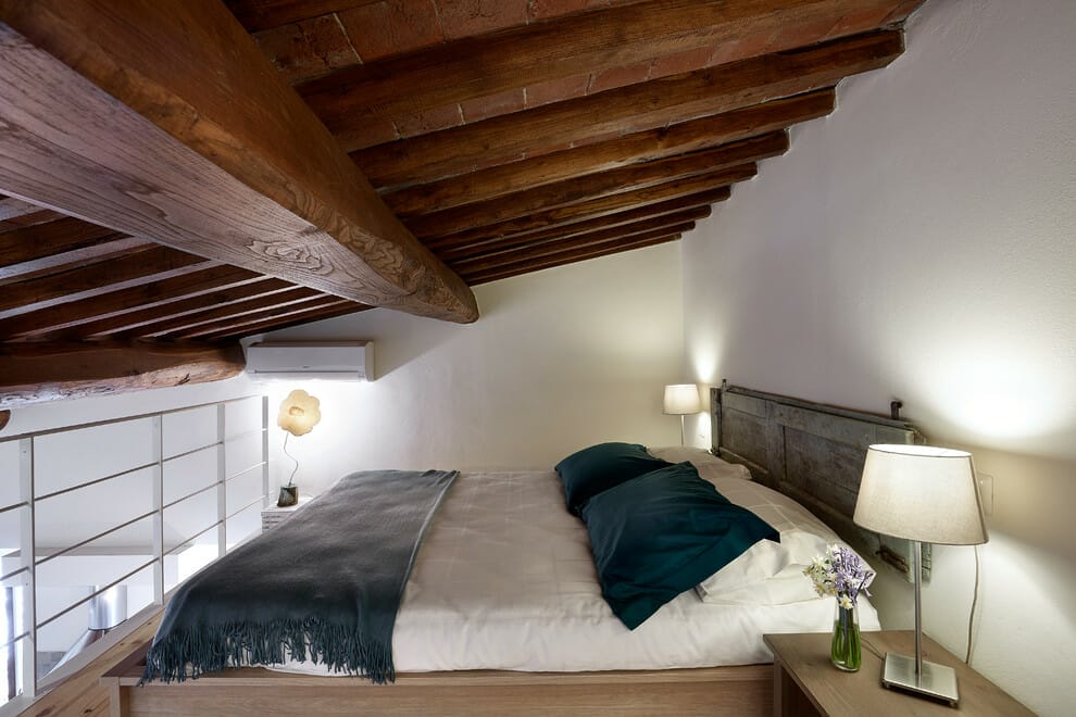 The skylight lends this loft bedroom a dreamy, airy look. Also, it lets you enjoy stargazing at night since it is above the bed.