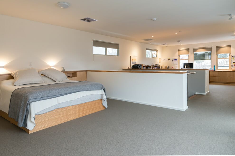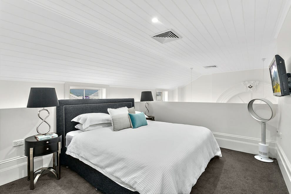 A loft bedroom always makes a great space-saving solution for small houses. With pony walls, this shared-ceiling space offers you a cozy sleeping area.