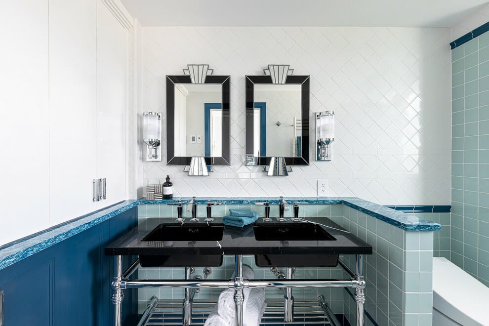 Meanwhile, a coastal appeal comes through the light blue tiles that are used to finish most of the walls.