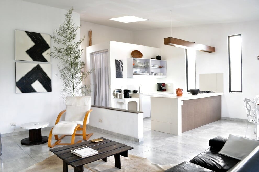 Additionally, in an open-floor interior with an all-white scheme, the use of woods gives the space a natural appeal that creates a chic and modern vibe.