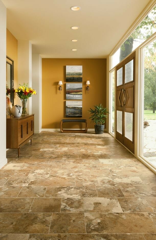 The options to have such flooring within your entryway are Congoleum, Levaro by Daltile, harbor slate, and Natural Clay by Achim Tivoli.