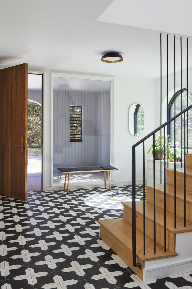 Black and white pattern tiled entryway ideas never fail to take the breath of the first glimpser. It is like stepping inside a different world.