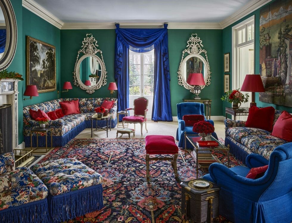 You can be the ordinary version of yourself inside this living space because the room itself is extraordinary. Undoubtedly, it is because of the blue and red accents, pattern abundance, as well as Victorian style.