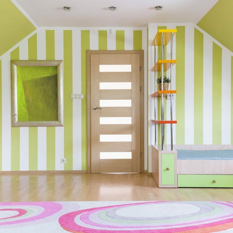 3. Green Stripes Wall Painting Design for Bedroom